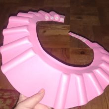 Excellent cap for keeping water off child’s face. I bought these for our 4 year old who kept screaming in the bath or shower when we’d wash her hair and water got on her face. I had low expectations of this product as it’s just a flimsy piece of foam. BUT it absolutely WORKS!!! My daughter is pleased and doesn’t scream any more. I snap it on the second to the last button and voila it’s magical. It looks silly but works perfectly. I definitely recommend this product to any parent with a child that struggles with water on their face while washing in the tub or shower.