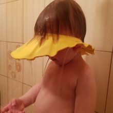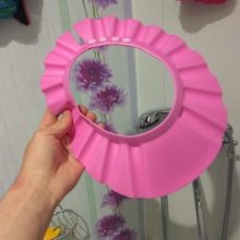 We enjoy using the baby shower cap and feel that it does a great job of keeping water away from face. Only negative is that it tends to slide down from time to time.