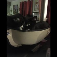 Sam is by far the biggest cat I’ve ever had the pleasure of owning. He loves to snuggle his large self into the bed and watch the goings on in the yard, tease the dog and harass the squirrels .. kitty nip was used for enticement the first few uses but after that he was enjoying with no added treats.