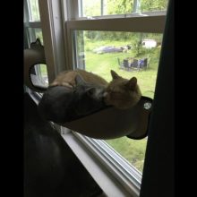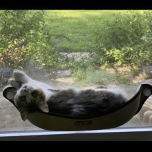 It took two months and four days before one of my cats suddenly decided this was a pretty cool spot to nap and hang out. At first they were both terrified of the weird new thing I hung on the window and then completely ignored it for two months. Finally one day I looked over and my big fatty was just chilling out in the bed like she'd been hanging out there forever. Only one has adopted the spot so far but I'm more than happy with that. Taking a star off because the first time I hung it up it fell down after about 15 minutes. But it's been sturdy since. And my cat is a larger lady and there have been no issues. So happy one of them finally took to it!