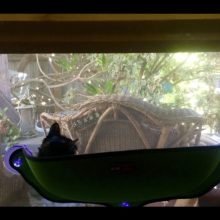 Super easy to install. Haven't had any problems with the suction cups coming off. Holds both my lighter under 10 lbs. cat and my heavier plus 10 lbs. one. The space is narrow but they seem to enjoy the cozy fit. Took a couple of weeks for them to start using the beds regularly but now they spend at least one nap a day in them if not more. Bought two beds and they can often be found snoozing side by side or otherwise checking out the action in the back yard. I think sometimes it may get too hot for them with their black fur if the sun is shining directly on the beds, but that's only a small part of day assuming there aren't any clouds. Overall very happy with these and would recommend giving them a try.