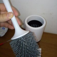 I have always used usual brushes before, water is constantly dripping from them onto the floor, onto the toilet and near the brush. I decided to try a silicone toilet brush and the result surprised me. water does not linger on it, does not spray, is dry and clean around. I advise.