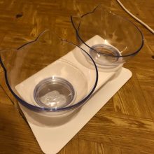 These bowls are super cute and look great. My cat like them because they are clear. They are easy to clean and feel sturdy as they are plastic.