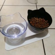This pet feeder is very small and cute, and it is very practical and durable. The elevated bowl is designed to release pressure from your cat's neck, making him more comfortable and happy while enjoying his food. At least, for my two black kittens it works.